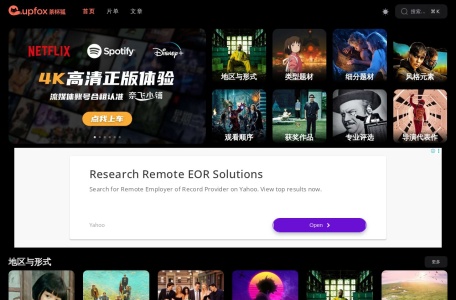 首页提供筛选电 影、动 漫、综 艺、纪录片,其他项目有投喂茶杯狐cupfox、茶杯狐优惠卷网站,点击作品进入详情页面,搜索结果有在线播放、资源下载、字幕下载,汇集了全网高清网站地址。
